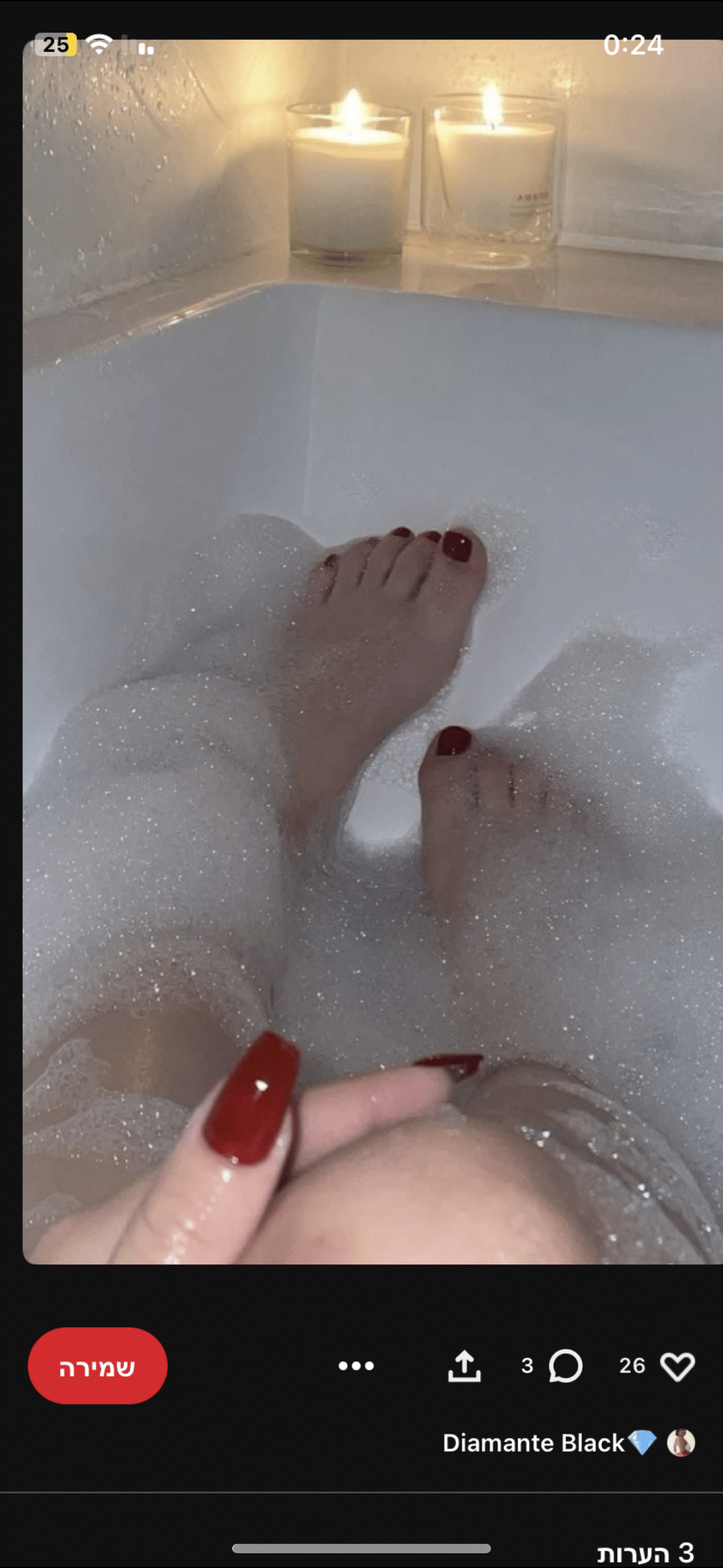 💋 מה אני אוהבת בכפות הרגליים שלי? כפות הרגליים שלי הן לא סתם חלק מהגוף – הן הביטוי החושני של הנשיות שלי. הן מטופחות בקפידה, עם עור חלק כמשי, קשת מעודנת ואצבעות שמזמינות לגעת. אני אוהבת את הדרך שבה הן נראות בעקבים גבוהים, את התחושה של משי על העור, ואת המבט של הערצה בעיניים של מי שמבין את הקסם שבהן. כל תנועה שלהן מספרת סיפור של פיתוי, עוצמה ואלגנטיות. הן לא רק נראות טוב – הן מרגישות טוב, והן יודעות בדיוק איך לגרום לך לרצות עוד. אם אתה מעריך יופי, חושניות וסטייל – אתה במקום הנכון. בוא לגלות את העולם המפתה של כפות הרגליים שלי, ולהתמסר לחוויה שלא תשכח.